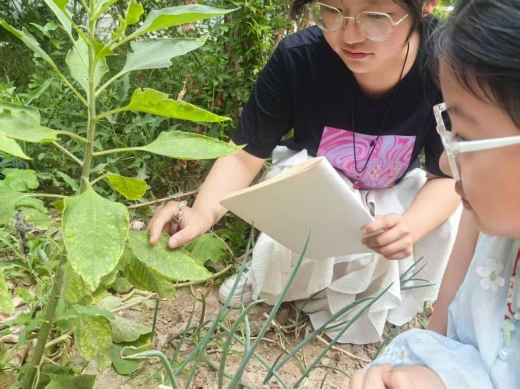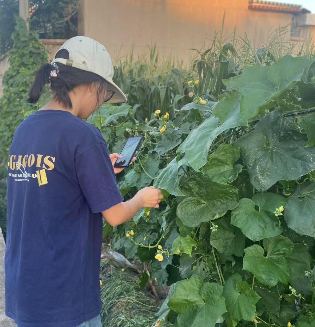 图片4:团队成员在观察农作物害虫情况 张昭仪 供图 2025年7月13日