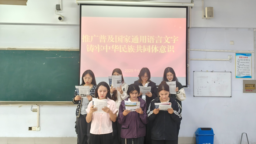 活动现场,集体朗诵环节中,同学们精神饱满、齐声诵读经典文学作品,在整齐划一的语调里,汉语言文字的典雅韵味与文化底蕴被充分展现,大家在诵读中感受语言的魅力,也在协作中加深了民族间的交流与认同。随后的个人朗诵环节,同学们踊跃参与,或饱含深情地演绎抒情散文,或铿锵有力地朗诵励志诗歌,他们用标准流畅的普通话诠释着文字的情感与力量,每一次发声都彰显着对国家通用语言文字的熟练掌握与热爱,现场掌声不断,学习氛围十分浓厚。