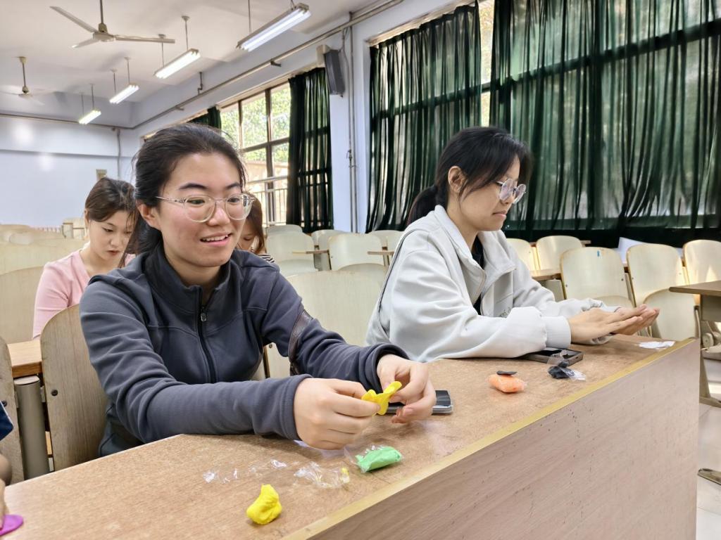 为传承非遗手工技艺、提升学子动手实践与审美素养,4月18日,花艺爱好者协会于求实楼0115教室举办“泥韵凝香土,指尖塑花魂”粘土花卉创意工坊活动。主讲人现场介绍超轻粘土特性与基础工具使用,示范花瓣塑形、花蕊制作、纹理刻画、色彩渐变等核心技法,带领同学们沉浸式体验粘土花艺创作全过程,感受指尖造物的独特魅力与手作艺术的温暖质感。此次活动让同学们在动手实践中释放创意灵感,锻炼动手能力,舒缓身心压力,在创作中感受手工艺术之美。未来,协会将持续开展创意花艺与手作活动,以匠心传艺,以指尖生花,丰富校园文化生活。