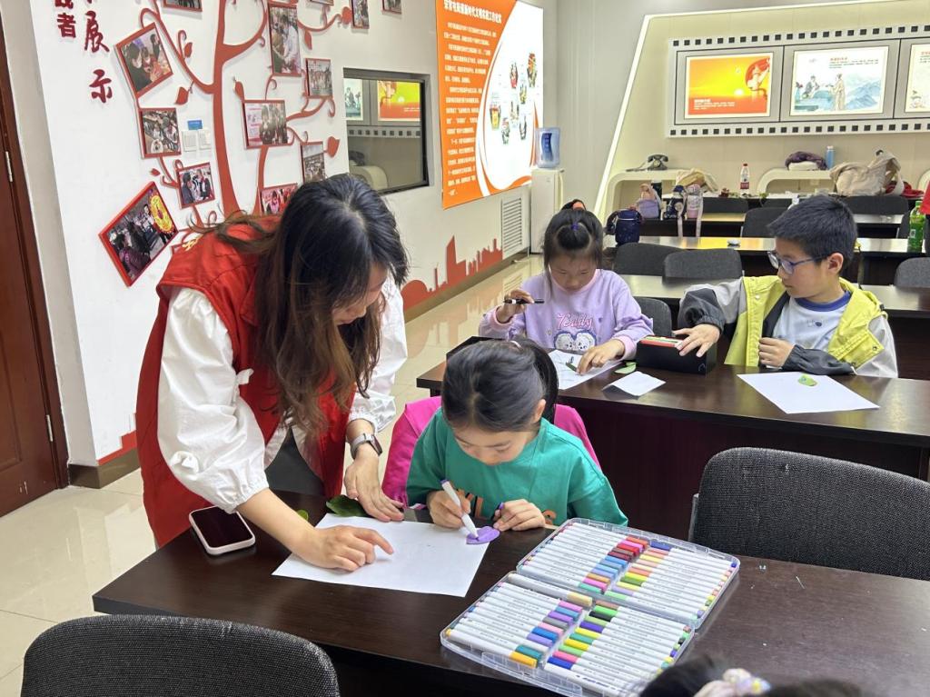 活动现场,志愿者们以生动有趣的方式,为孩子们开展谷雨节气文化宣讲。志愿者们详细讲解了谷雨“雨生百谷”的节气由来,分享了时节农事习俗、传统饮食、人文典故等知识,让孩子们深入了解谷雨时节的传统文化与人文内涵,感受古人顺应天时、亲近自然的生活智慧。随后,志愿者带领孩子们开展植物拓印手工实践活动,大家精心挑选新鲜的花草叶片,在志愿者的耐心指导下,通过敲打、按压等方式,将植物的纹理与色彩拓印在画布上,亲手制作出独具自然意趣的拓印作品,在动手实践中近距离感受植物生机,体会传统手工技艺的乐趣。