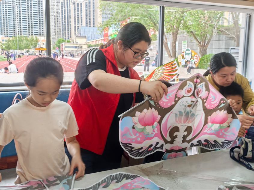 活动现场,学生党员与青年志愿者们首先协助德城区图书馆工作人员,为到场的亲子家庭办理读者图书卡,细致讲解图书馆借阅规则与数字资源使用方法,引导孩子们走进图书馆、开启阅读之旅。随后,德城区图书馆工作人员带领小朋友们共读《北京沙燕风筝》主题绘本,以生动的讲述带领孩子们了解风筝的历史渊源与文化内涵,在趣味阅读中感受非遗文化的独特魅力。绘本阅读结束后,工作人员与党员志愿者们共同带领孩子们进行风筝制作,随后前往户外广场,在春风中放飞亲手制作的风筝,让承载着书香与童趣的纸鸢乘风而起。